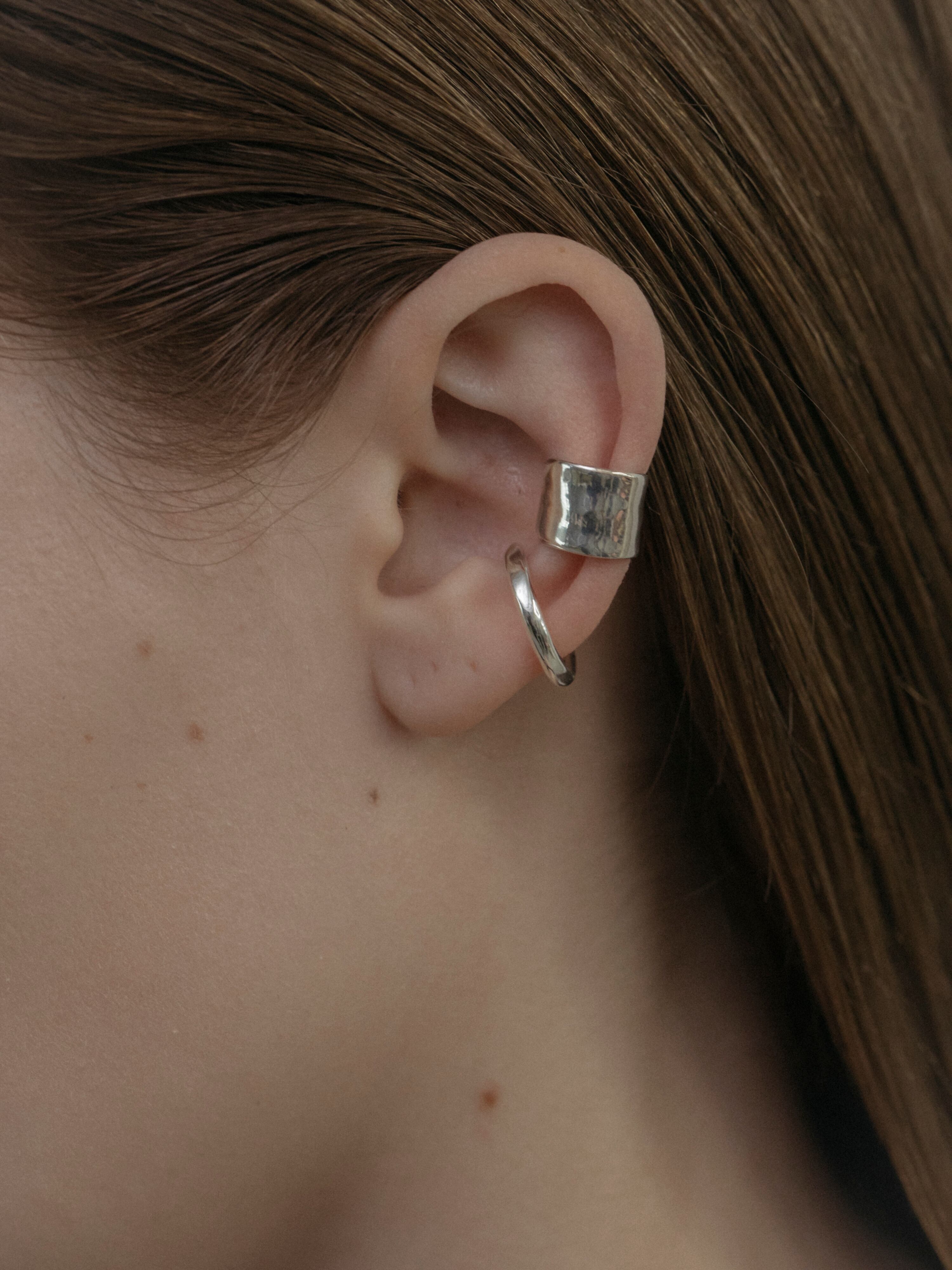 raw big hoop earcuff silver